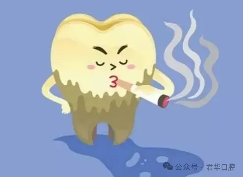 长期吸烟可使焦油沉积于牙面,黏附牙菌斑及软垢,形成结石。